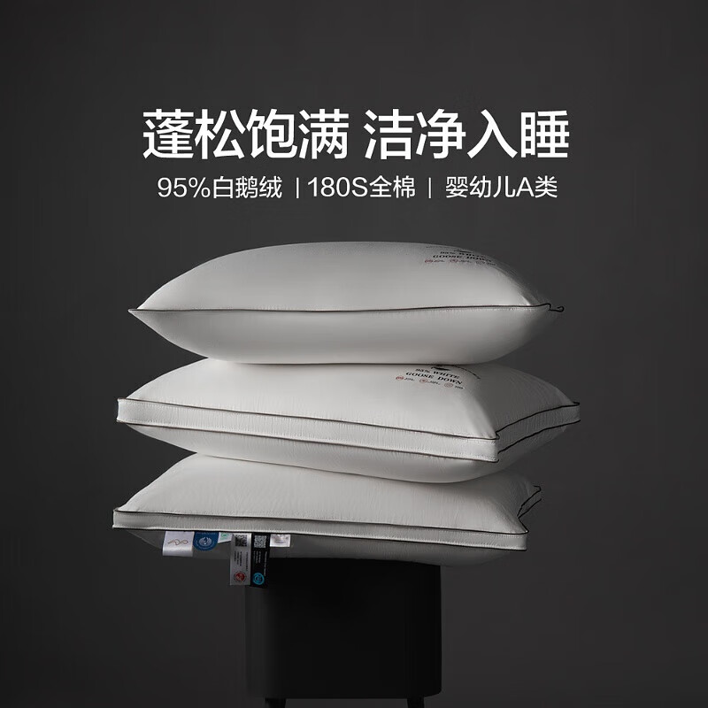 水星家纺 95%白鹅绒纯棉面料羽绒枕 星臻享抗菌鹅绒鹅毛枕中枕价格:2389.00元!