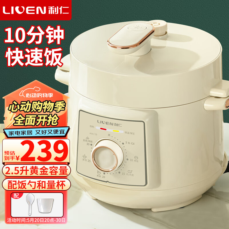 利仁(Liven)电锅家用高压锅小型 多功能电高压锅锅 一键排气2.5升 高压锅多用锅2-3人 YLG-J2551价格:239.00元!