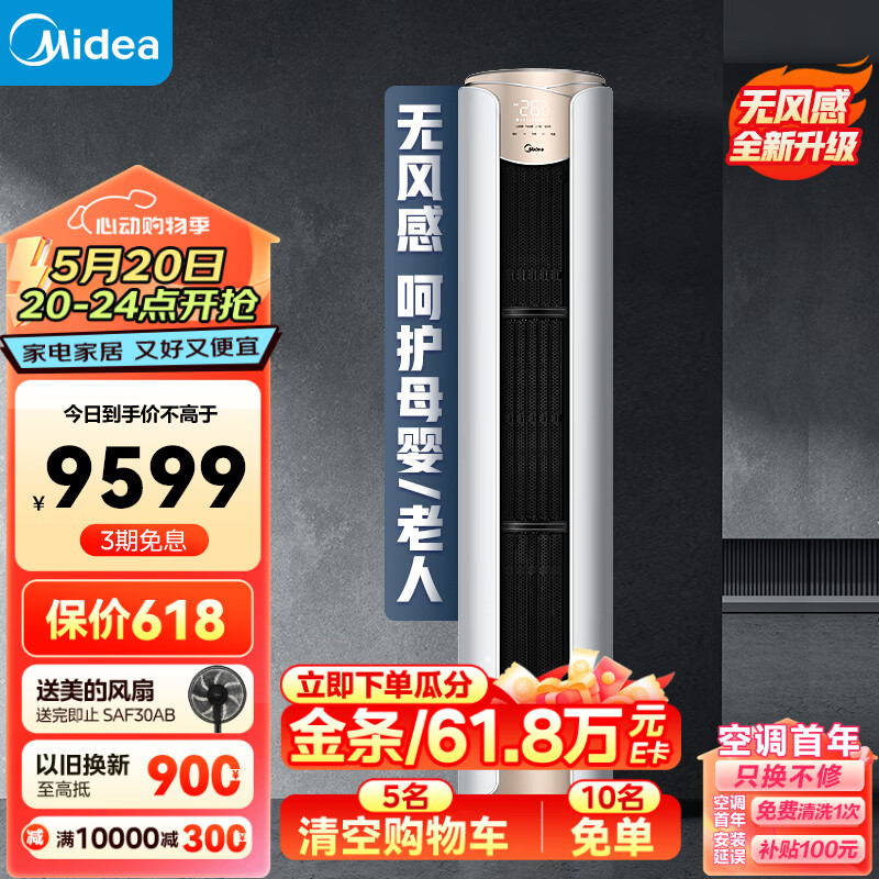 美的(Midea)空调 3匹 纤白 新一级 变频冷暖 独立除湿 京东小家 客厅立式 空调柜机 无风感 KFR-72LW/N8MWD1价格:9449.00元!