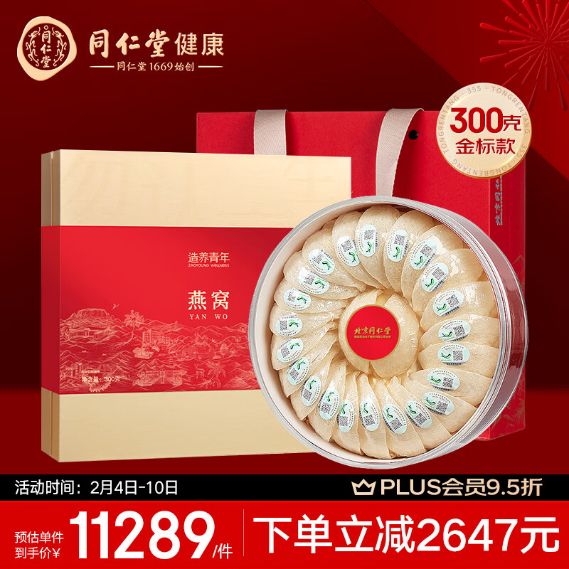北京同仁堂【春节礼品 过年送礼盒】造养青年干燕窝(金标款)300克 马来西亚原产 干盏溯源干燕盏 送长辈 孝敬父母 孕妇滋补礼品 每盏约5.5g-6.8g价格:12985.00元!