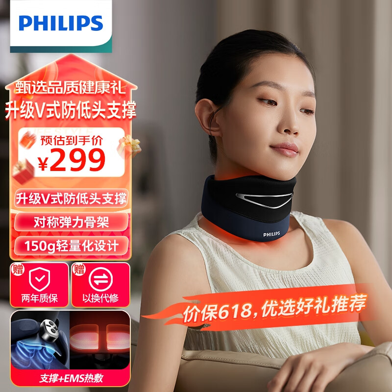 飞利浦(PHILIPS)颈部按摩器颈椎按摩仪按摩枕EMS脉冲热敷承托三合一低头族肩颈小颈托生日礼物礼品3306N价格:299.00元!