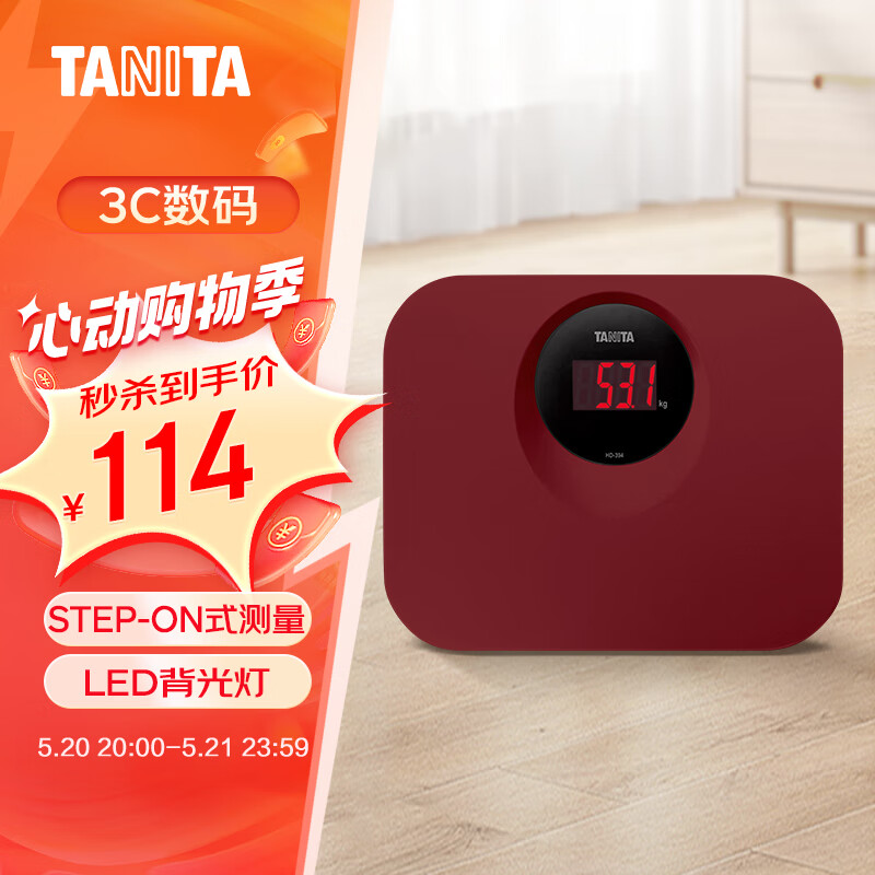 百利达(TANITA) HD-394 电子体重秤 人体秤家用精准减肥用 日本品牌健康秤 红色价格:114.00元!