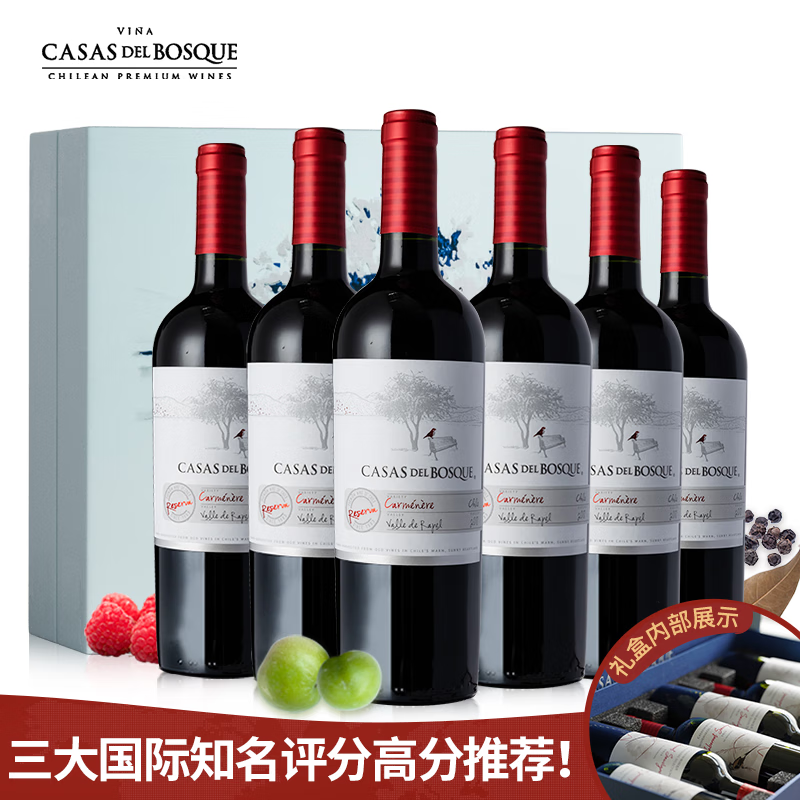 露颂【连续3年TOP50葡萄园】智利干红葡萄酒原瓶进口整箱红酒礼盒 酿酒师珍藏佳美娜 6支装价格:725.00元!