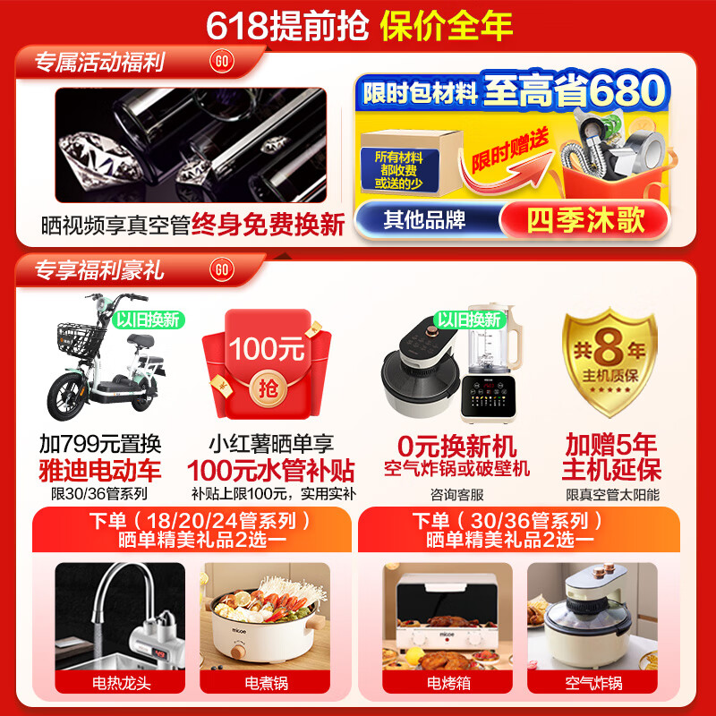 四季沐歌太阳能热水器价格参考: