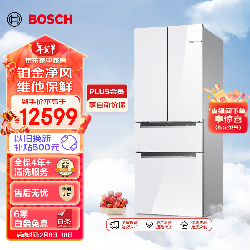 博世(BOSCH)【云朵白全域智净M7】462升家用变频风冷无霜保鲜法式多门双循环电冰箱KFF72VA23C价格:12599.00元!