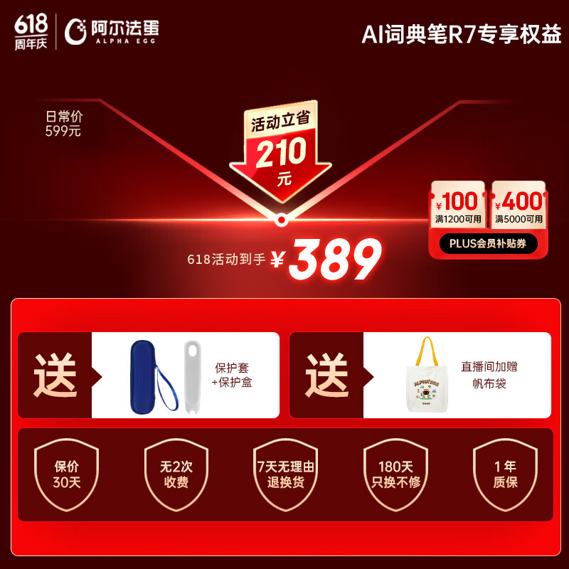 阿尔法蛋AI词典笔R7 英语点读笔神器 翻译笔离线扫描 中小学英汉扫读学习笔单词笔电子词典学习机价格:389.00元!