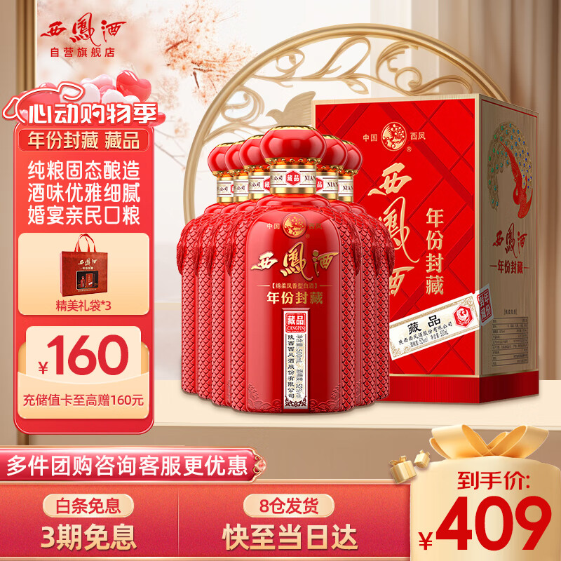 西凤酒 年份封藏品52度陕西纯粮绵柔凤香型白酒婚宴请送礼盒装500mL*6价格:459.00元!
