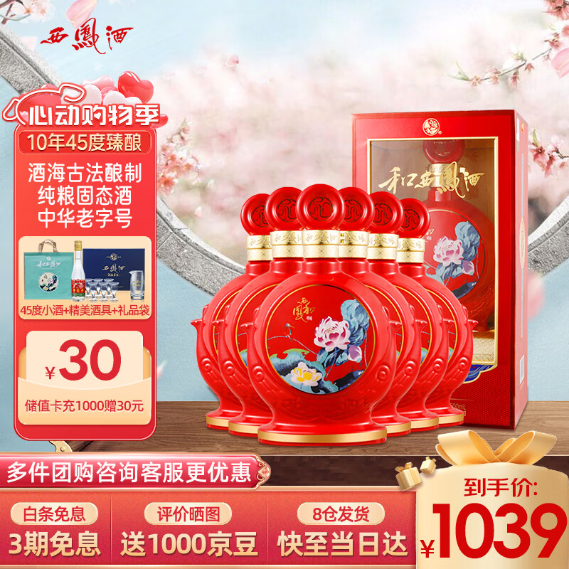 西凤酒 10年45度和系列陕西纯粮凤香型白酒节日婚宴请送礼盒装500mL*6价格:1050.00元!