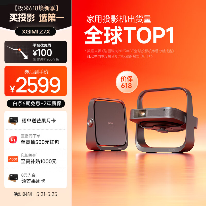 极米Z7X 投影仪家用 轻薄投影机 (真实高亮 哈曼卡顿原装音响 全自动梯形校正 极米专属2年全保)价格:2599.00元!