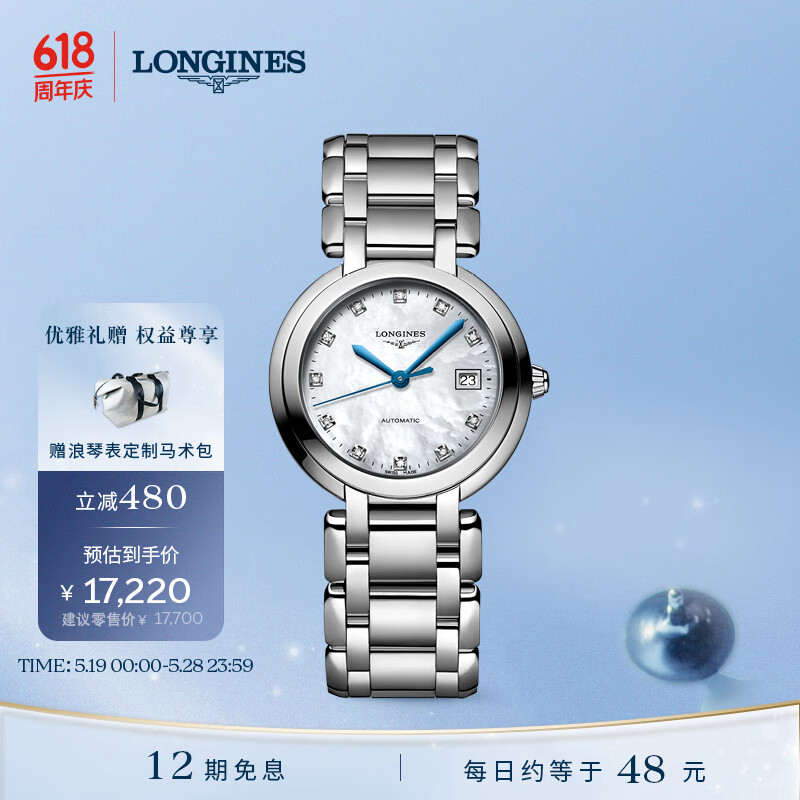 浪琴(LONGINES)瑞士手表 心月系列 机械钢带女表 520情人节礼物 L81134876价格:17220.00元!