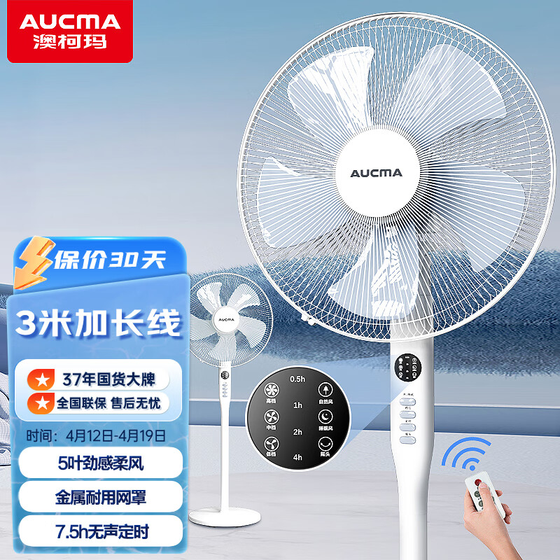 澳柯玛(AUCMA)3米电线遥控落地扇/轻音电风扇/家用办公室风扇/大风量风扇/电子定时/台式扇 FS-35S600价格:139.00元!