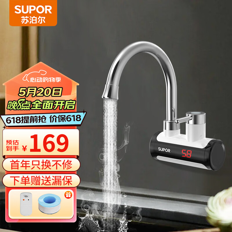 苏泊尔( SUPOR )电热水头 侧进水即热式速热快速加热过水热厨房卫用阳台电热水器272047-01-CP侧进水价格:179.00元!