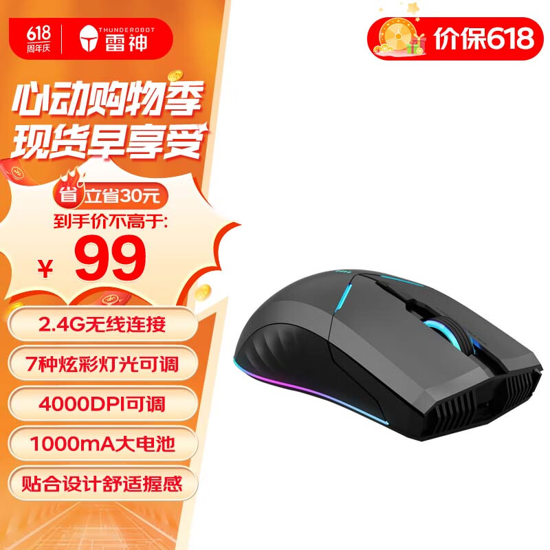 雷神(ThundeRobot)ML701无线游戏鼠标 办公电竞机械鼠标 可充电长续航 七色灯带 csgo绝地求生cf吃鸡鼠标价格:129.00元!