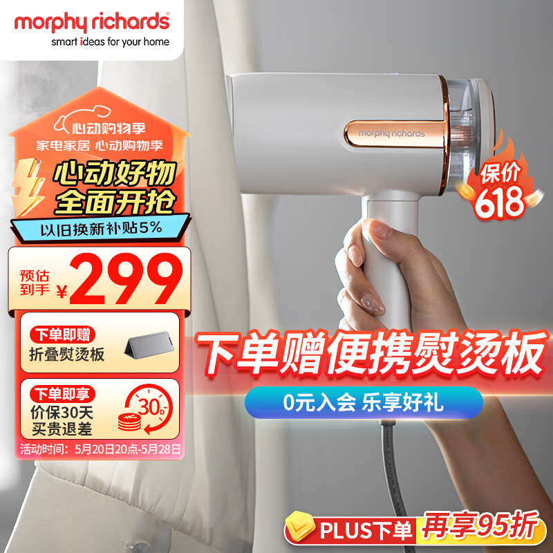 摩飞电器(Morphyrichards)手持挂烫机家用蒸汽电熨斗熨烫机 小型迷你旅行便携式烫衣服神器MR2031白价格:349.00元!