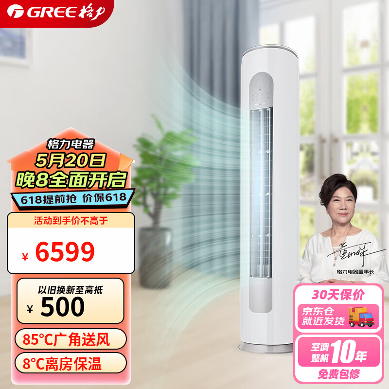 格力(GREE)3匹 京秀 三级能效 变频冷暖 宽幅送风 立柜式空调柜机 KFR-72LW/(72587)FNhAb-B3价格:6599.00元!