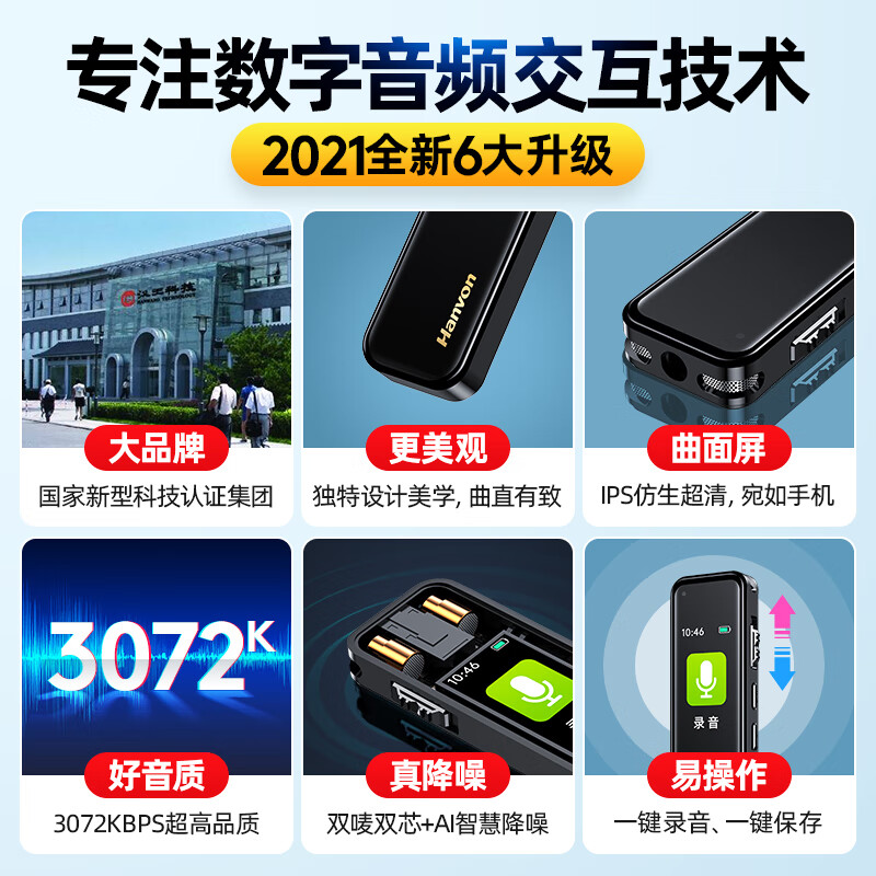 汉王(Hanvon)录音笔G6 16G 专业高清远距声控降噪 超长待机录音器学生学习商务采访会议培训价格:159.00元!