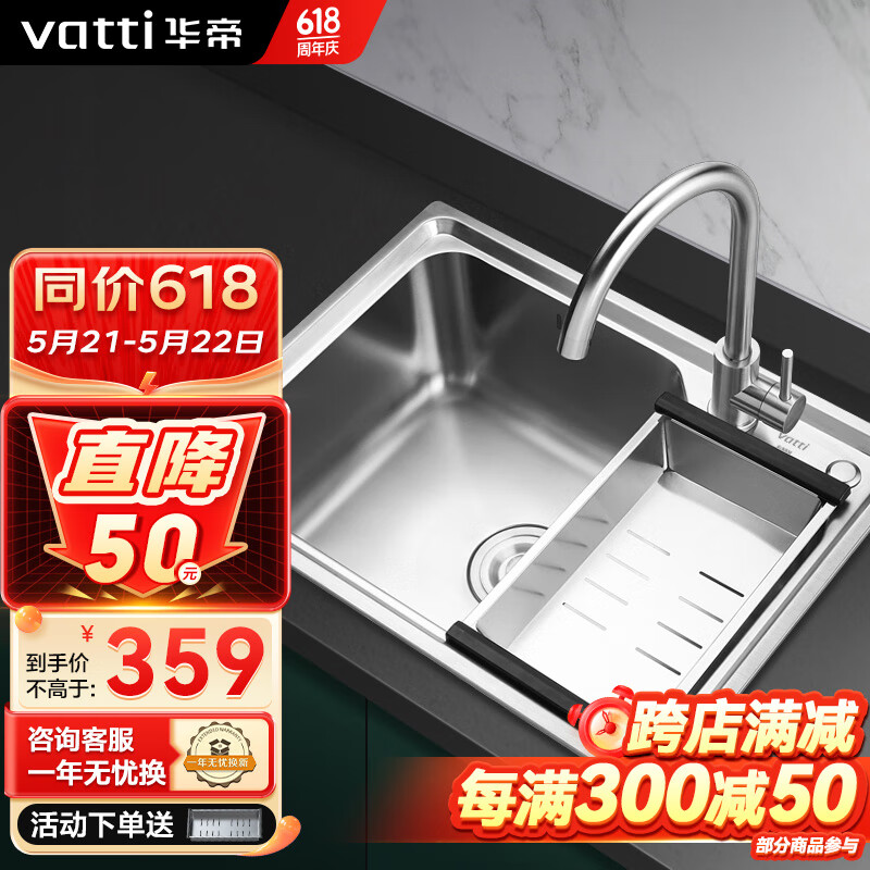 华帝(VATTI)304不锈钢水槽单槽拉丝不锈钢洗菜盆 厨房水槽 厨房洗碗盆 091101价格:600.00元!