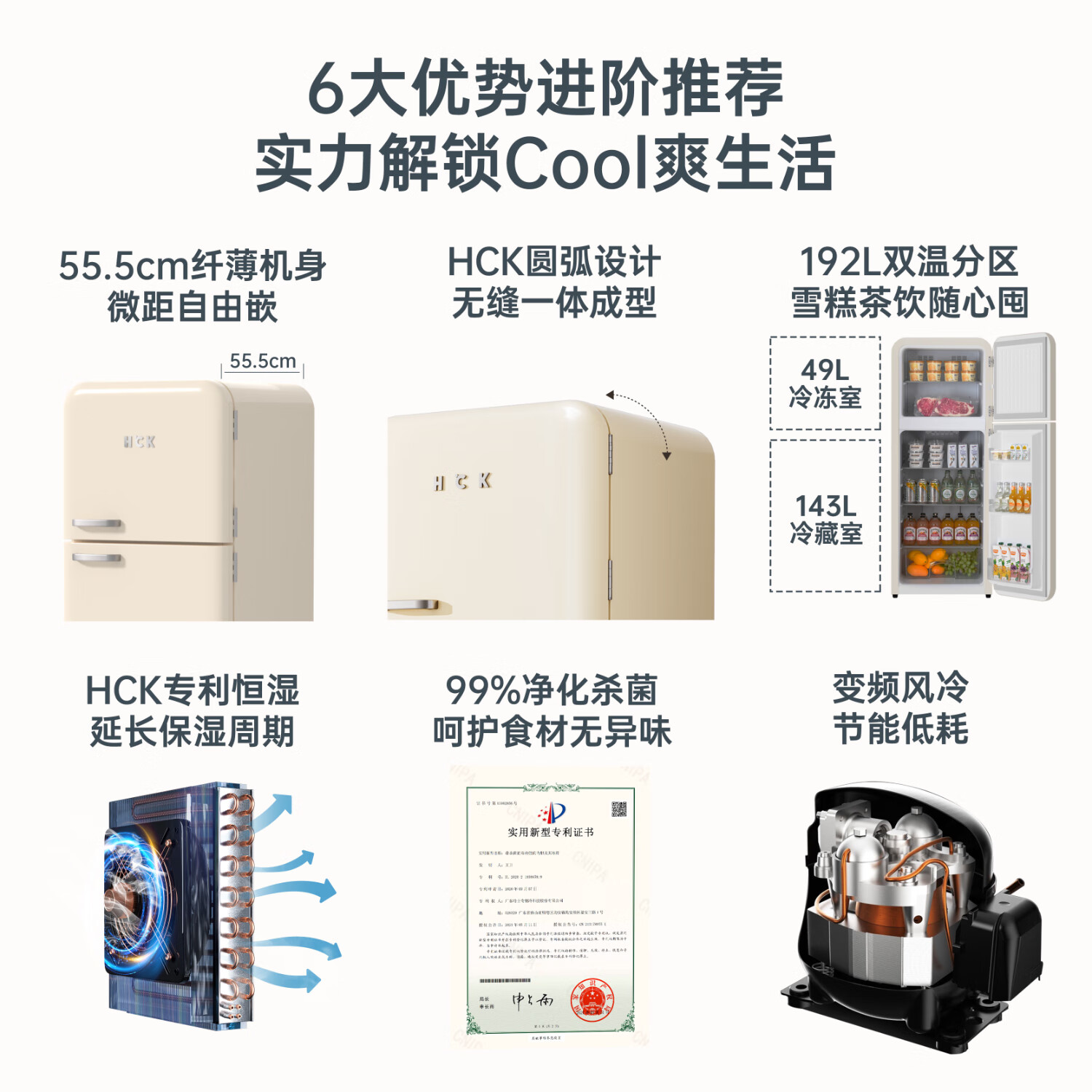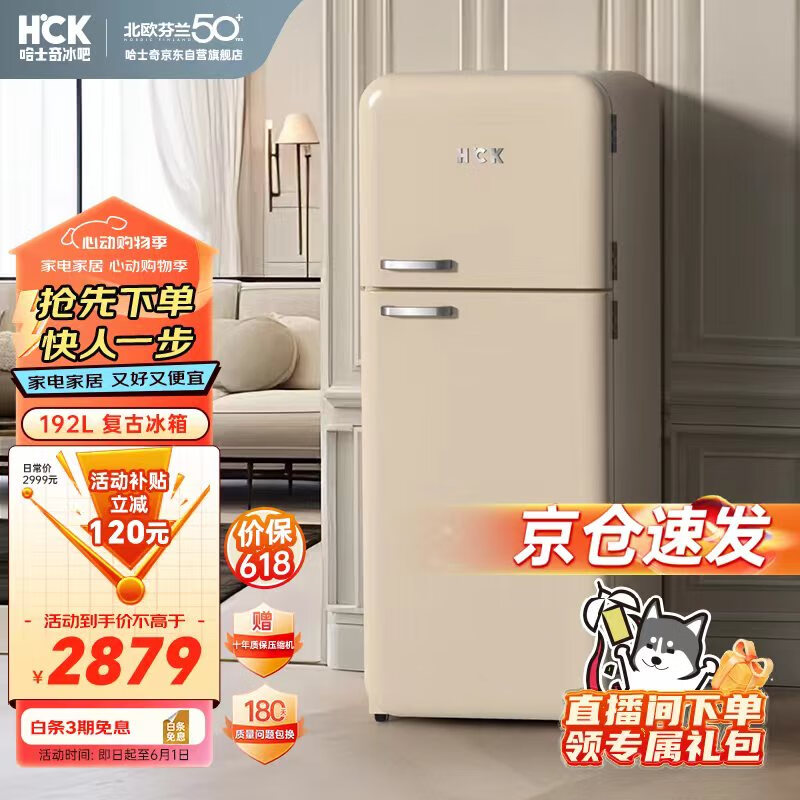 哈士奇客厅冰箱变频节能复古双门风冷无霜家用纤薄冷藏冷冻双温冰箱客厅小香风 192升 BC-192RS浅黄色价格:2999.00元!