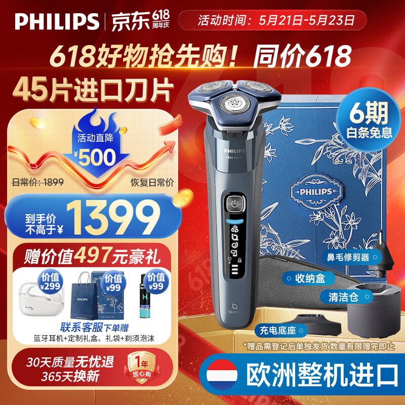 飞利浦(PHILIPS)男士电动剃须刀蜂巢7系Pro+ SkinIQ高端系列刮胡刀 【整机荷兰进口】520礼物送男友老公S7882价格:1499.00元!