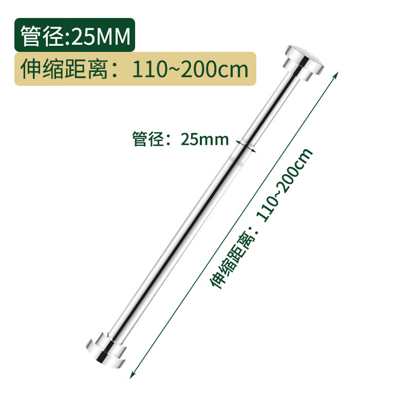 侑家良品 伸缩杆免打孔不锈钢晾衣杆撑杆浴帘杆窗帘杆25mm管径长110-200cm价格:39.90元!