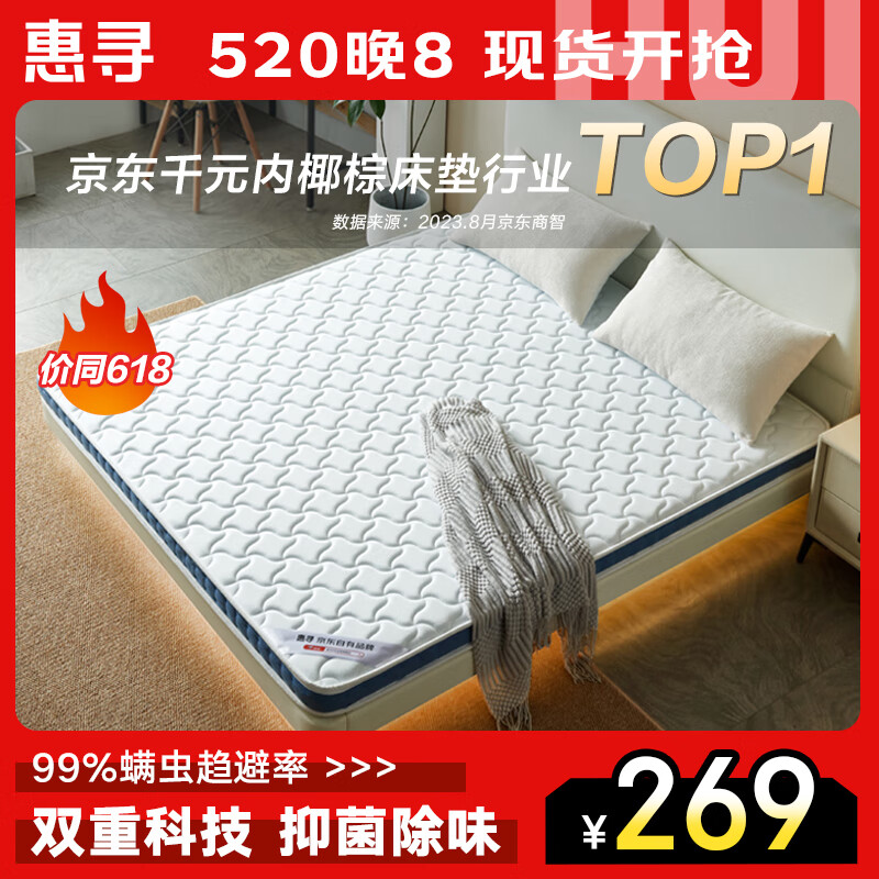惠寻99%抑菌防螨椰棕床垫7cm价格参考: