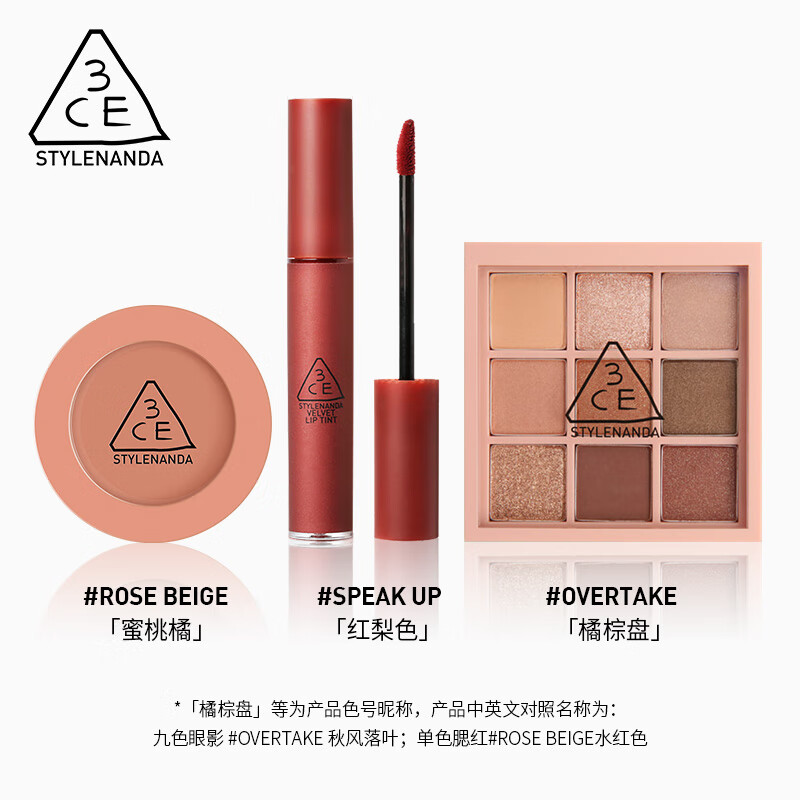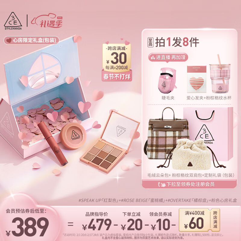 3CE心房限定礼盒套装新年情人节礼物眼影橘棕盘唇釉红梨色腮红蜜桃橘价格:479.00元!