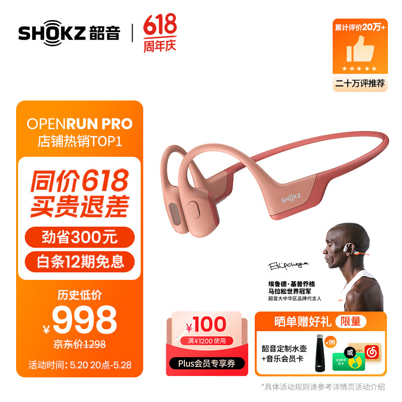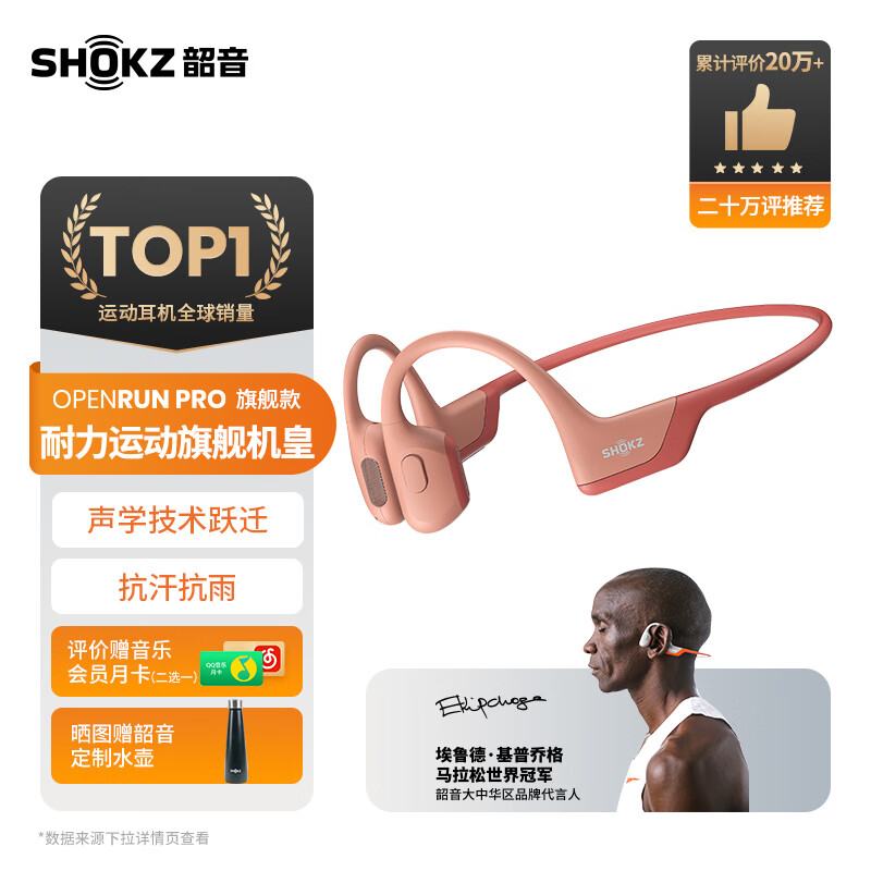 韶音(SHOKZ)【历史低价】OpenRun Pro骨传导蓝牙耳机开放式耳机运动无线骨传导耳机跑步不入耳佩戴S810/S811 西柚粉价格:998.00元!