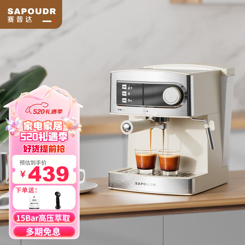 赛普达EC10全半自动浓缩小型家用蒸汽奶泡意式咖啡机价格:351.00元!