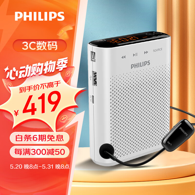 飞利浦(PHILIPS)SBM230 小蜜蜂扩音器教师专用无线喇叭腰挂麦克风导游便携插卡音箱喊话器户外教学讲课白价格:499.00元!