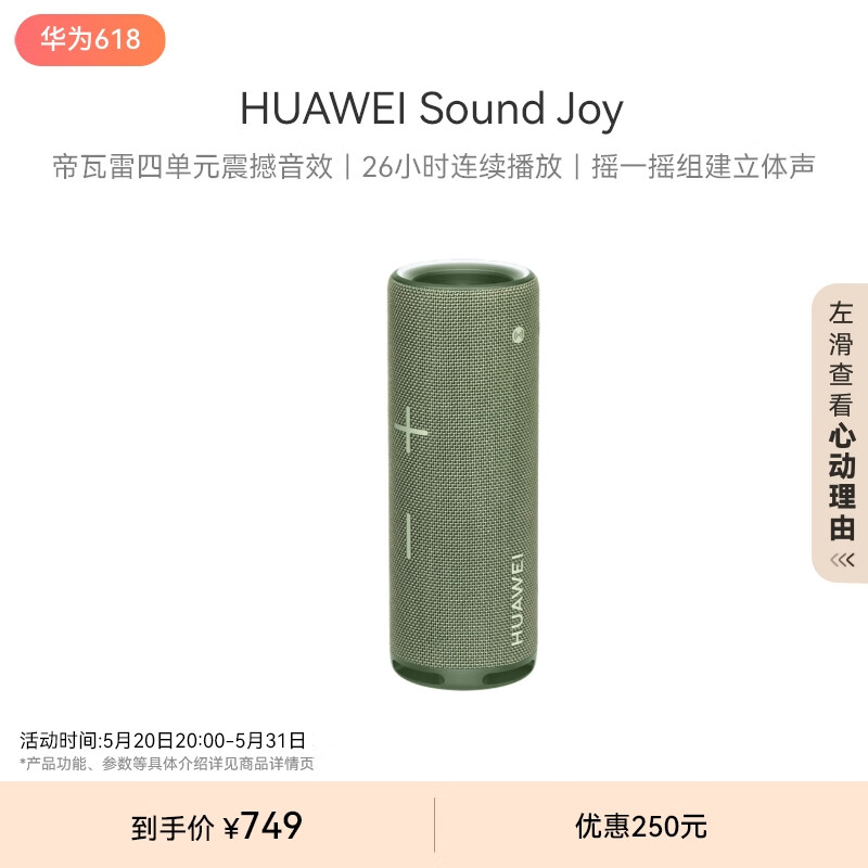 华为Sound Joy 便携式智能蓝牙音箱 电脑音响 两台组建立体声 26小时长续航户外音箱 云杉绿价格:749.00元!