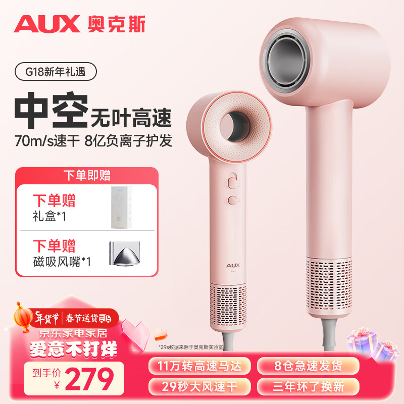 奥克斯(AUX)高速吹风机家用中空负离子电吹风大功率速干低音大风力不伤发吹风筒 新年情人节礼物送女朋友价格:349.00元!