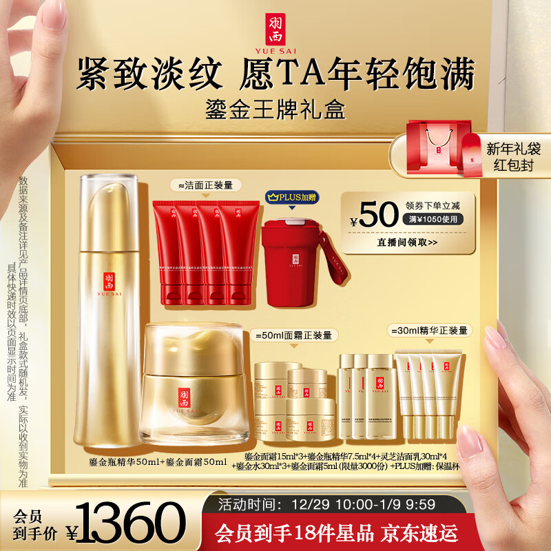 羽西鎏金套装(精华50ml+面霜50ml)玻色因保湿抗皱新年礼物护肤品女价格:1360.00元!