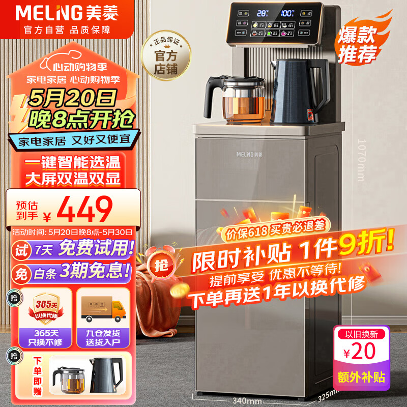 美菱(MeiLing)茶吧机 家用饮水机遥控智能双温双显双出水口下置水桶高端大屏自主控温立式饮水机制冷MY-C915-B价格:499.00元!