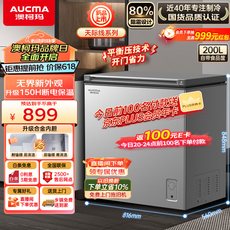 澳柯玛(AUCMA)200升低霜平嵌家用冰柜商用冷藏柜冷冻柜 无界单温冷柜 一级能效 天际线 以旧换新 BC/BD-200HSNE价格:1199.00元!