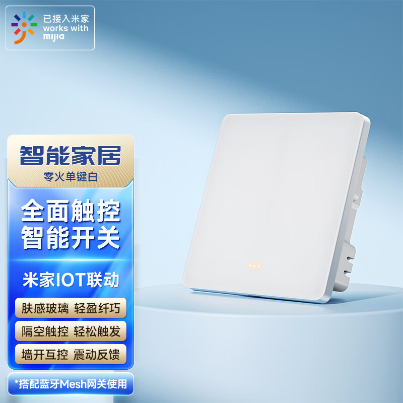 领普科技小米IOT联动触控智能开关QT1 AG肤感超薄玻璃全屏触控带震动反馈触摸开关 零火单键白价格:149.00元!