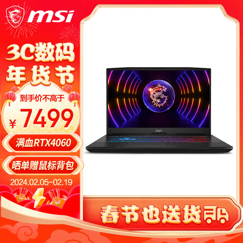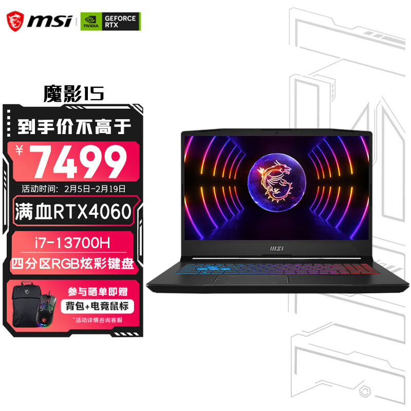 微星(MSI)魔影15游戏本 15.6英寸电竞笔记本电脑(13代酷睿i7-13700H 满血RTX4060 16GB 1TB 2.5K 165Hz)价格:7799.00元!