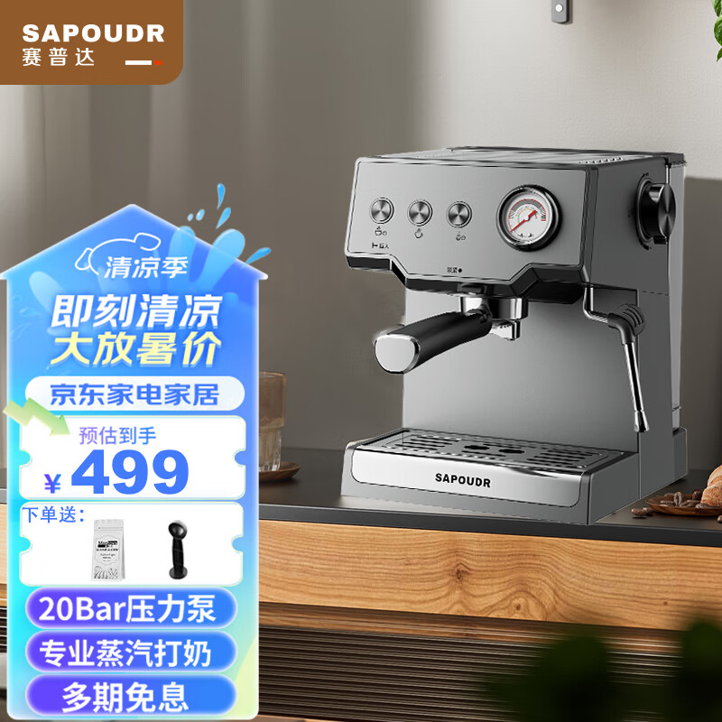 赛普达EC25家用半自动意式小型蒸汽打奶泡一体浓缩咖啡机20Bar半自动带表显示咖啡机端午送礼价格:499.00元!