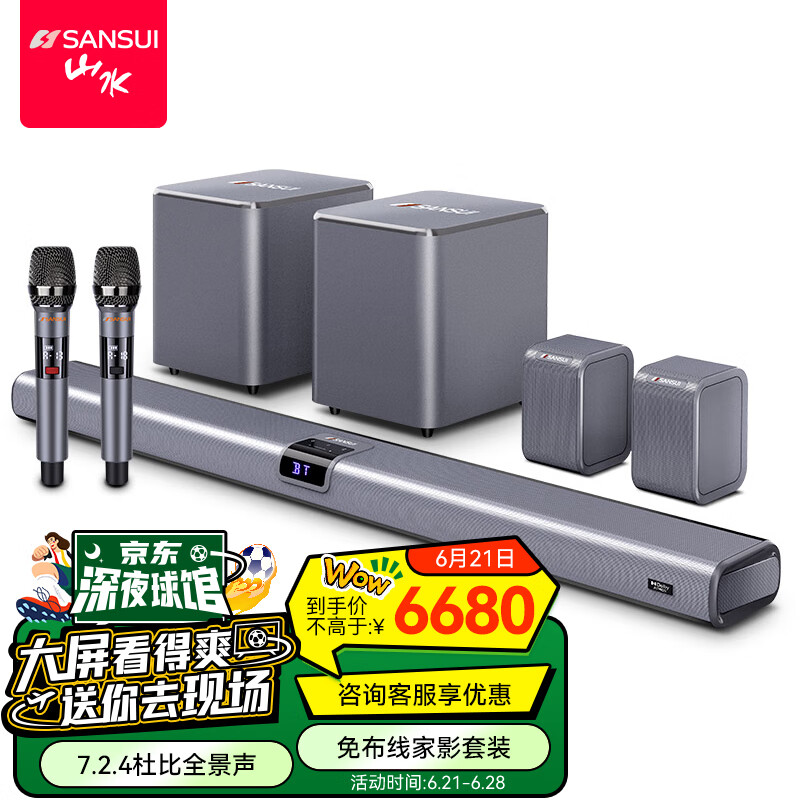 山水(SANSUI)欧洲杯DV-99C 7.2.4杜比全景声回音壁 家庭影院KTV音响套装 电视投影仪蓝牙音响 免布线无线环绕价格:6600.00元!