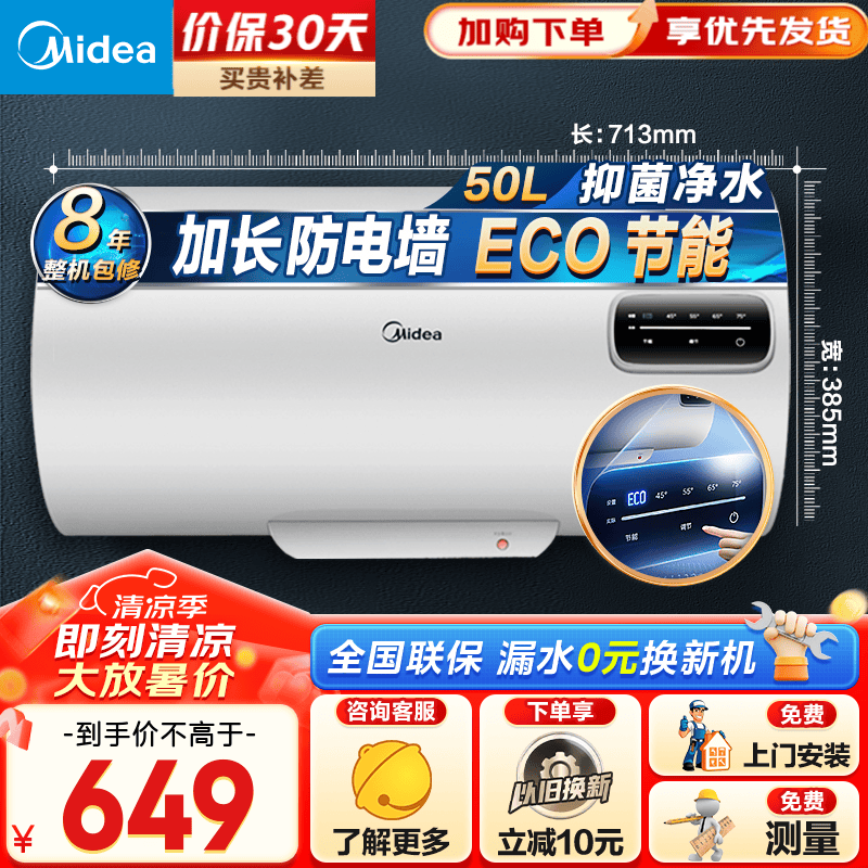 美的(Midea)储水式电热水器电家用多升数可选经济适用防护速热电热水器机械升级数显款X0 50L 2000W 【适用2-3人】数显价格:649.00元!
