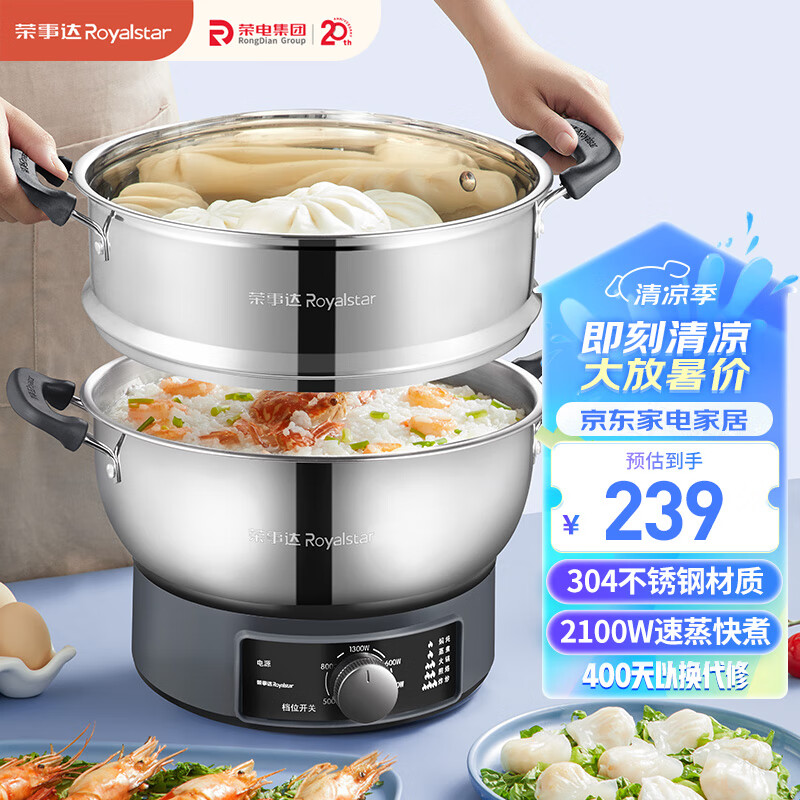 荣事达(Royalstar)电炒锅电蒸锅多功能电热锅山东锅多用电火锅电煮锅单层大容量电锅RDG-32X单笼价格:239.00元!