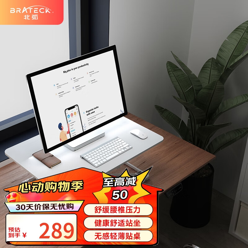 Brateck升降电脑桌 北弧站立办公升降台 站立式电脑升降支架 D200白价格:309.00元!