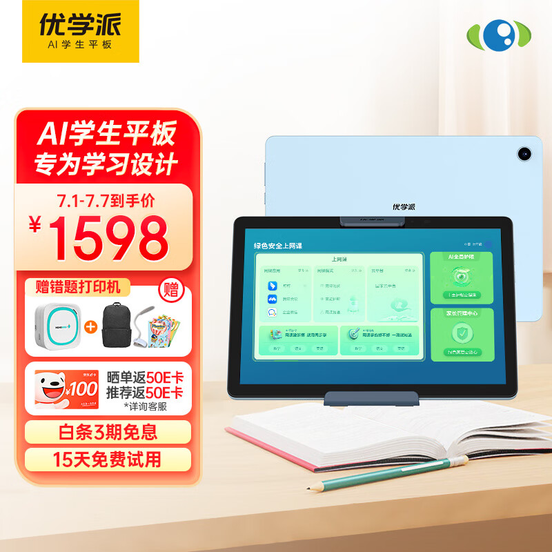 优学派学习机E16(128G)10.1英寸 护眼学生平板电脑 智能语音问答家教机小学初中高中辅导英语点读机 价格:1798.00元!