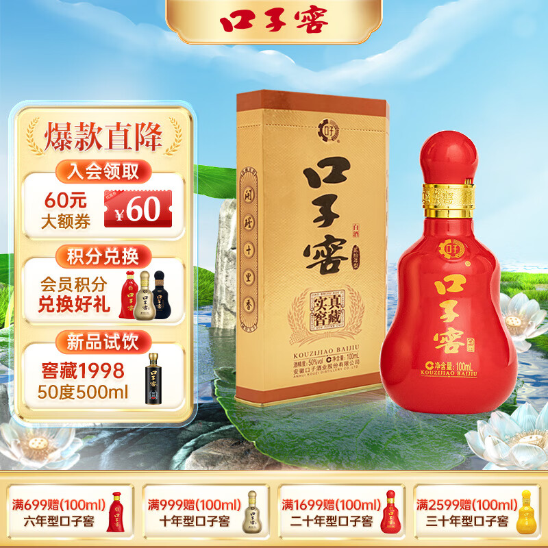 口子窖 二十年型 兼香型白酒 50度 100ml 纯粮酿造价格:118.00元!