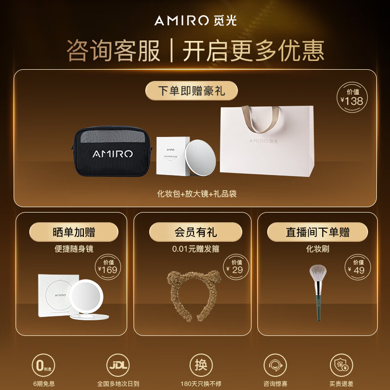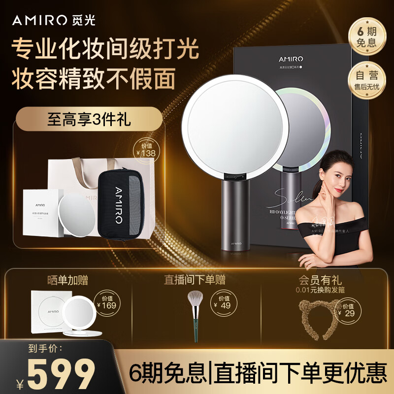 AMIRO觅光化妆镜带灯led日光梳妆 美妆镜子补光智能 桌面 生日礼物送老婆送女生 小黑镜价格:699.00元!