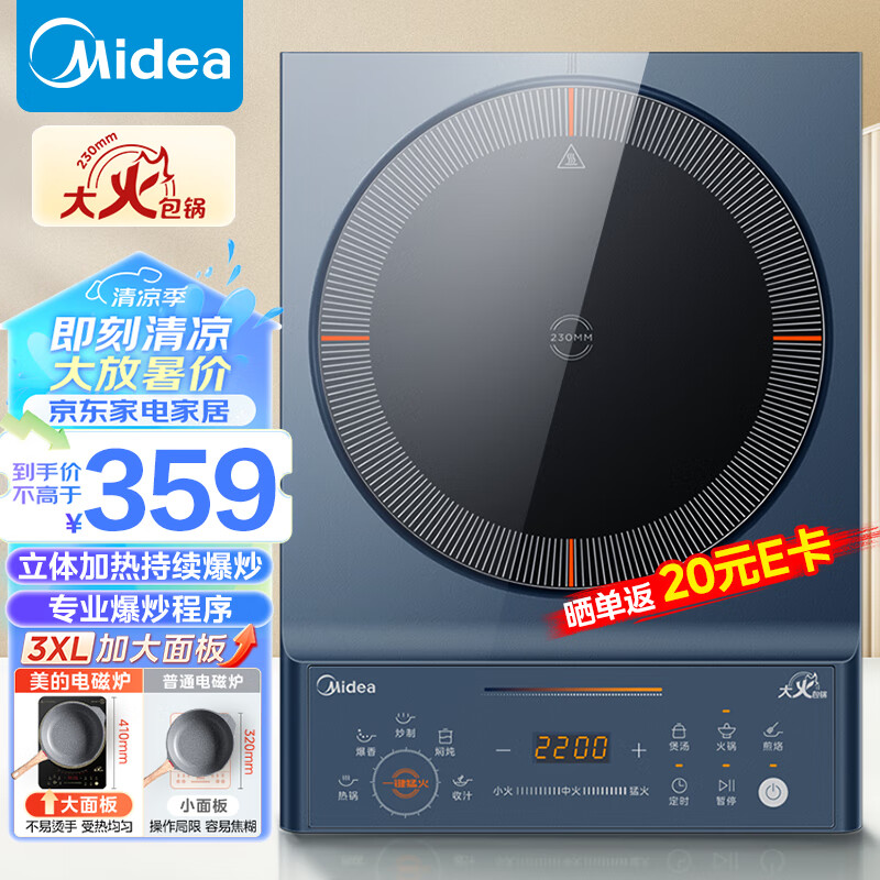 美的(Midea)电磁炉 家用大功率 匀火加热 火锅炉 九档火力 智能定时 MC-CLC2266价格:359.00元!