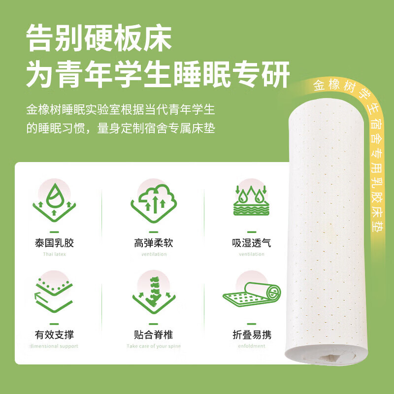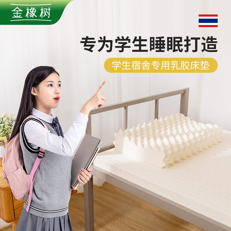 金橡树泰国进口天然乳胶床垫子宿舍学生单人床垫90*190*5cm 云梦95D价格:586.00元!