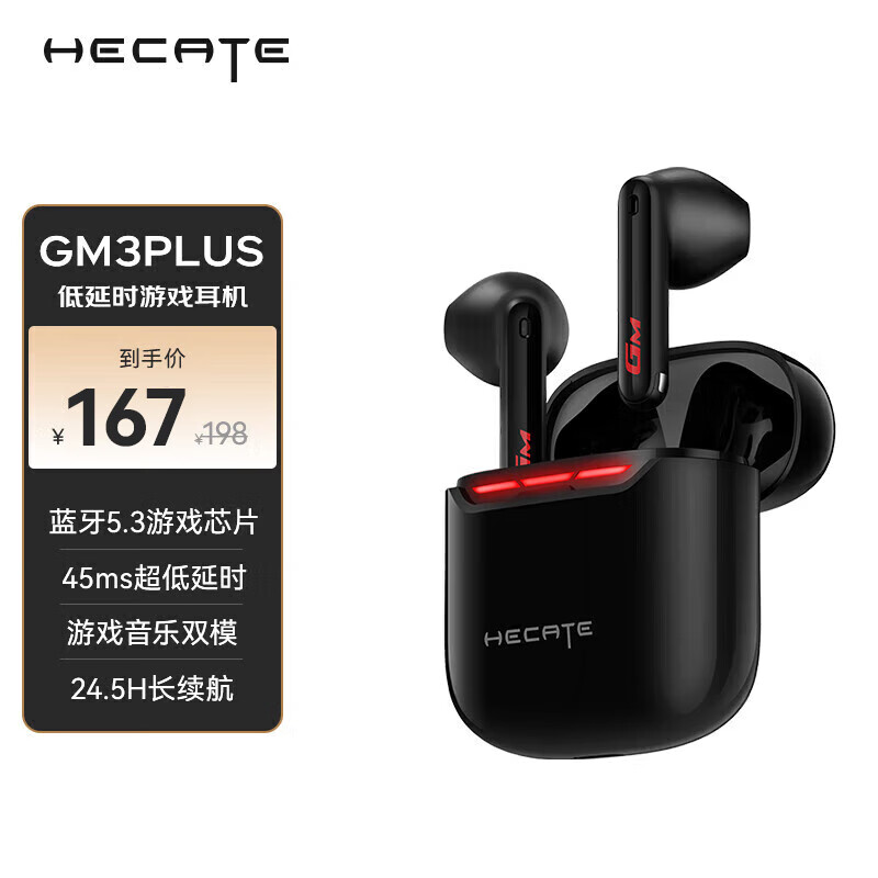 漫步者(EDIFIER)HECATE GM3 PLUS 真无线蓝牙5.3【45ms低延时】半入耳式游戏音乐耳机适用黑鲨华为小米武士黑价格:167.00元!