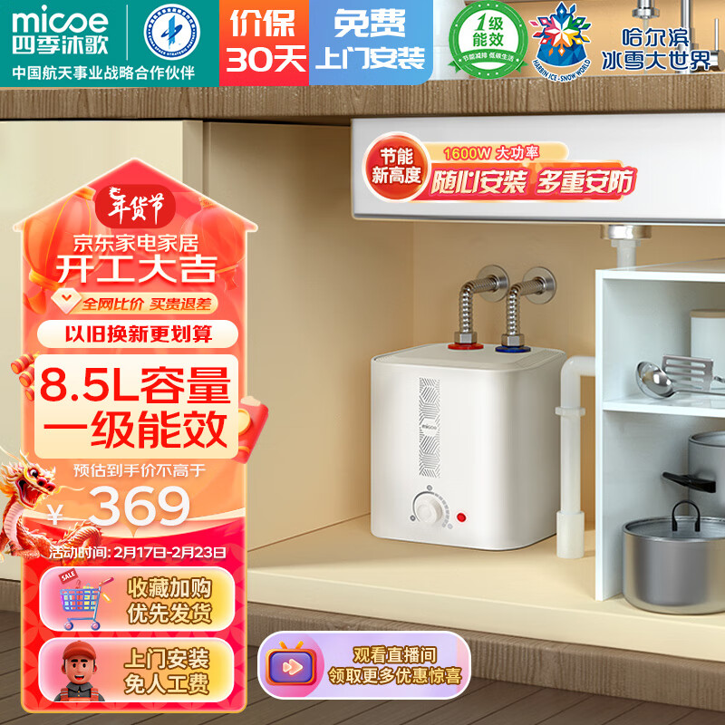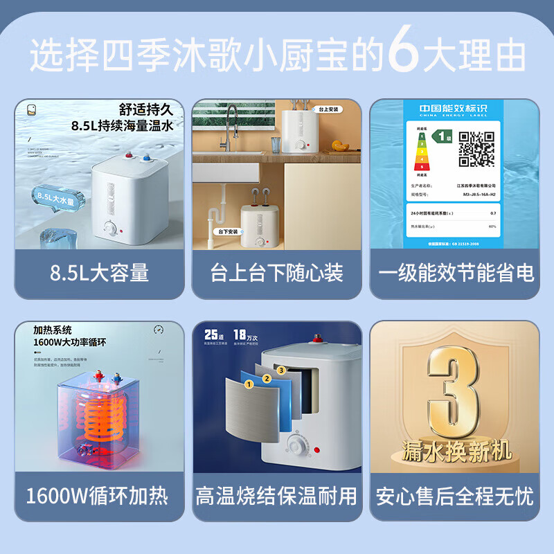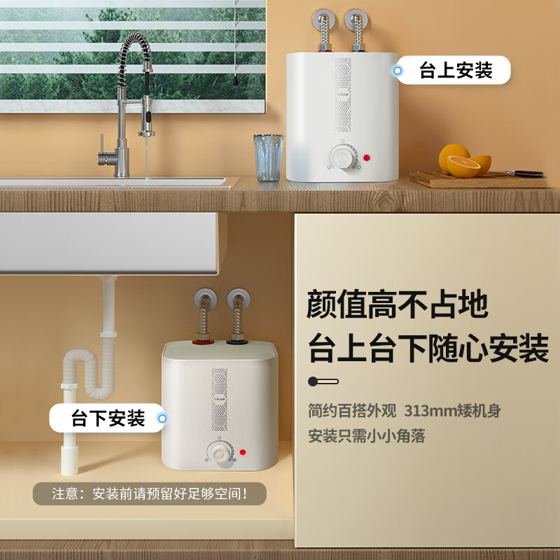 四季沐歌(MICOE)小厨宝电热水器 一级能效储水式速热1600W家用厨房上出水 热水宝圆桶保温小型储水过水热8.5升 【8.5升一级能效方形】上门安装价格:368.72元!