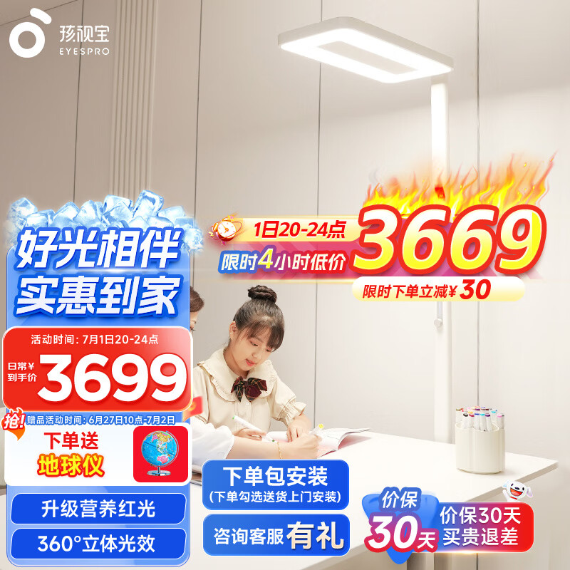 孩视宝红光学生护眼台灯立式LED全光谱落地学习灯儿童阅读灯E5-160W-R价格:7199.00元!