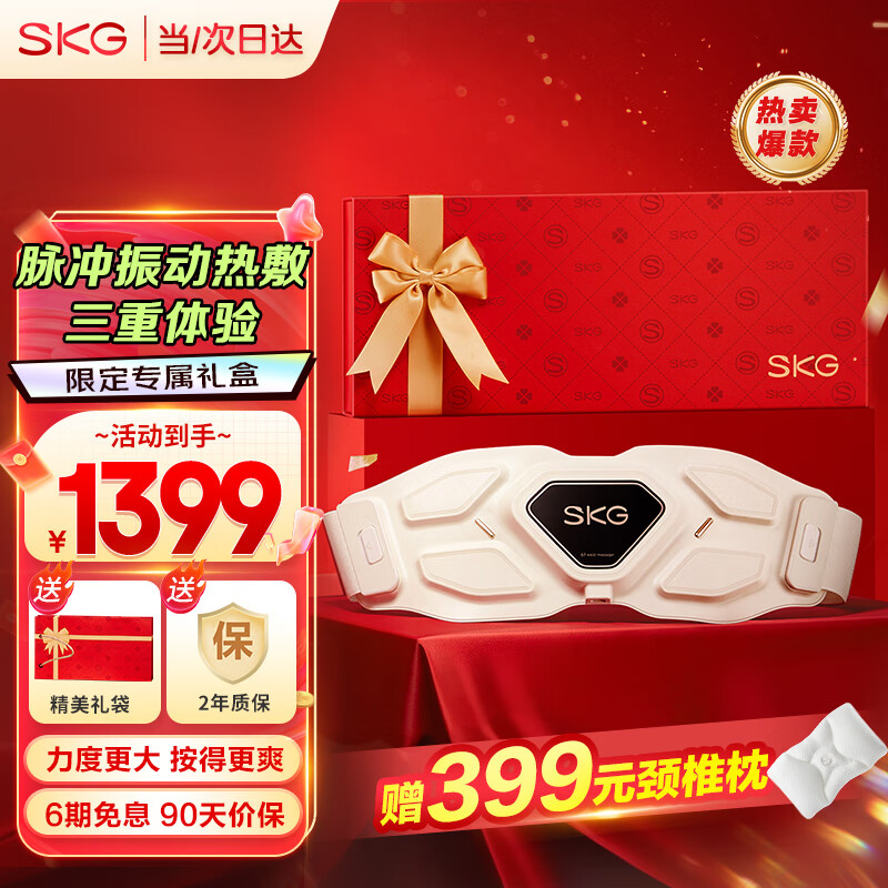 SKG腰部按摩器金腰带热敷护腰物理脉冲揉捏智能按摩仪梅耶马斯克同款 送男女友老师高档实用毕业礼物 【限定精美礼盒】G7豪华款价格:1599.00元!